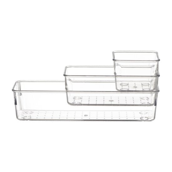 No solo es un organizador de cajones, también puede utilizarse en el refrigerador o como bandeja de almacenamiento en el escritorio para productos como cosméticos, herramientas de maquillaje y suministros de oficina.
